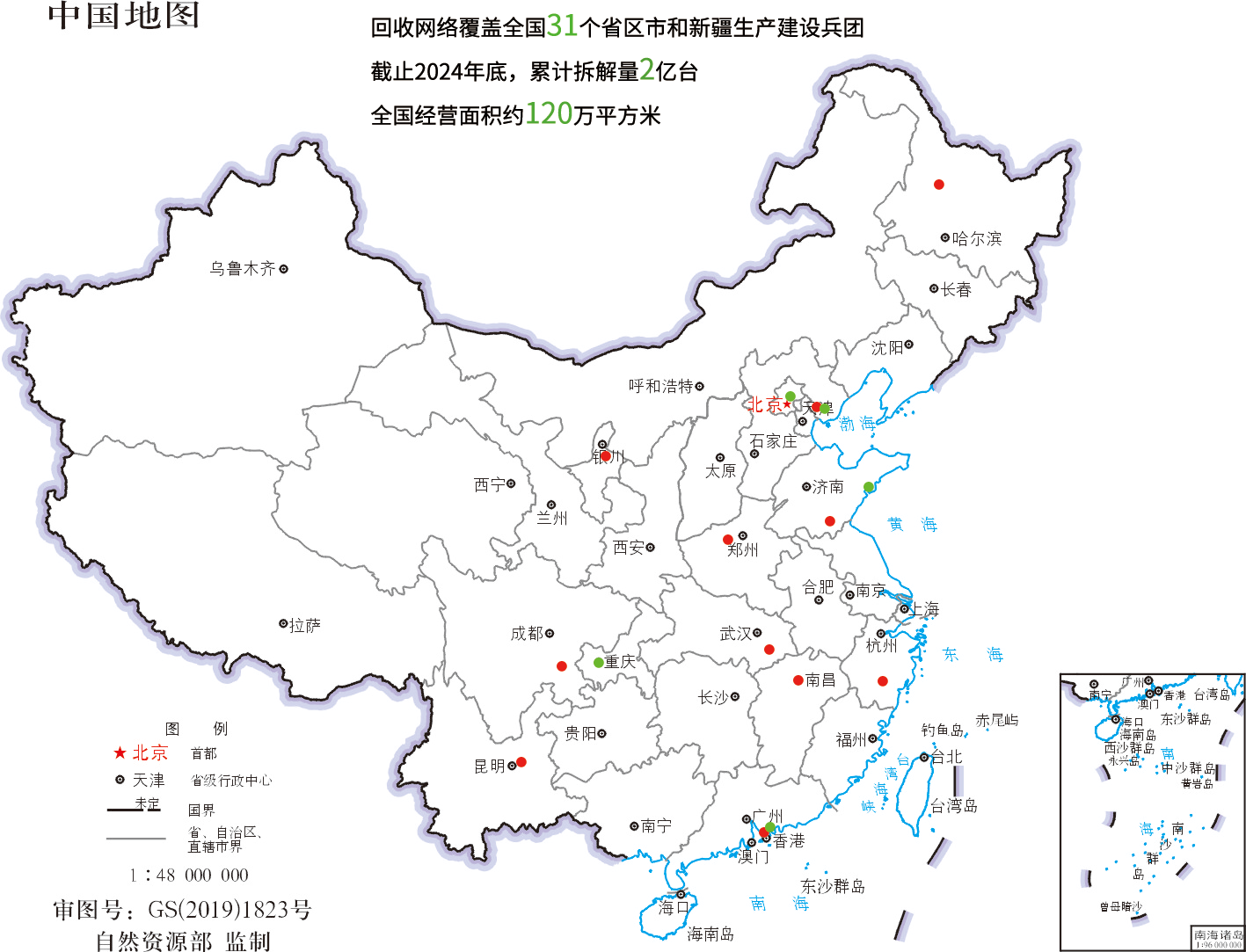 中再資源環境股份有限公司是一家專門回收處理廢棄電器電子產品的公司,公司成立至今已擁有11家廢棄電器電子產品拆解企業(全部納入廢棄電器電子產品處理基金補貼范圍的企業名單),分布于黑龍江綏化、河北唐山、河南洛陽、山東臨沂、湖北蘄春、江西南昌、四川內江、浙江衢州、廣東清遠、云南昆明、寧夏銀川等地,已在全國范圍內建立起完善、穩定和優質的廢電器回收網絡,年處理能力達到3,578萬臺;一家下屬企業主營產業園區固體廢棄物一體化處置,服務大型工業產廢企業,服務網點分布于山東青島、河北唐山、廣東清遠、重慶市等地。