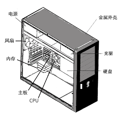 電腦主要由電腦顯示器、主機、鍵盤、鼠標等零部件組成,其中顯示器的構造和電視機構造相似,主要有外殼、陰極射線管、電路板、喇叭、變壓器、高頻頭、消磁等零部件組成,主機由金屬外殼、主板、風扇、電源、內存條、CPU、光驅和軟驅等零部件組成。材質構成有玻璃、塑料、銅、鐵、鋁、貴重金屬等再生資源。
